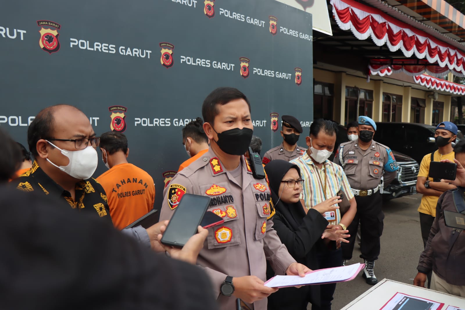 Hadir dalam kesempatan tersebut Kapolres Garut AKBP Wirdhanto Hadicaksono, S.I.K., M.Si., didampingi Kasat Reskrim AKP Dede Sopandi, S.IP., Kasie Humas IPDA Cahya, serta wartawan dari berbagai media yang mengikuti Press Release.