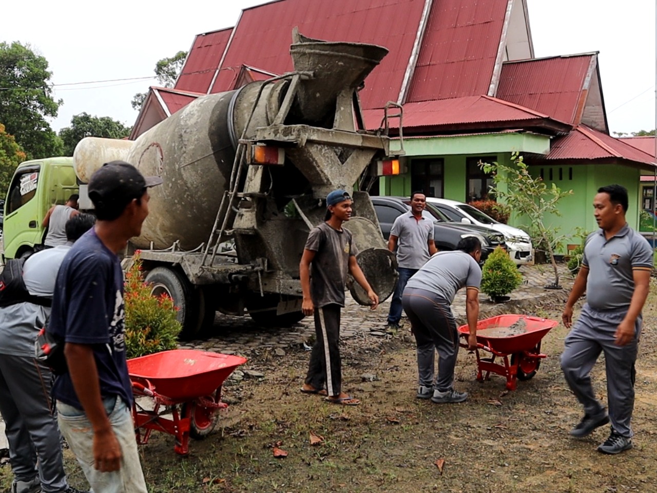 Kapolres Kuansing AKBP Rendra Oktha Dinata S.Ik M.Si, bersama Kepala Sekolah SLBN Negeri Teluk Kuantan Harma Susiyanti S.Pd, secara simbolis memulai Pengecoran jalan dengan panjang 115 m, Lebar 1,5 m menuju sekolah tersebut.