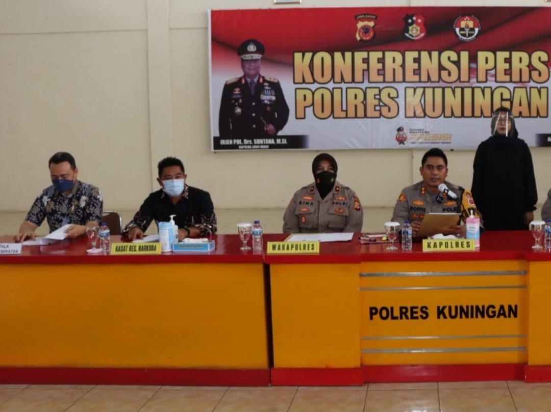 Kuningan, SIBER88.CO.ID_Menjelang berakhirnya tahun 2021, Kapolres Kuningan AKBP Doffie Fahlevi Sanjaya, S.I.K., M.Si menggelar rilis akhir tahun terkait penanganan dan pengungkapan berbagai kasus yang terjadi sepanjang tahun 2021, Jumat (31/12/21).