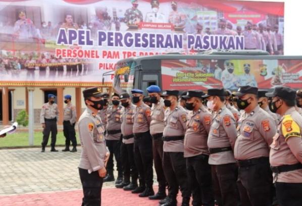 Lampung Selatan, SIBER88.CO.ID_Polres Lampung Selatan menggelar upacara Pergeseran Pasukan (Serpas) pengamanan pemilihan kepala desa serentak 2021.