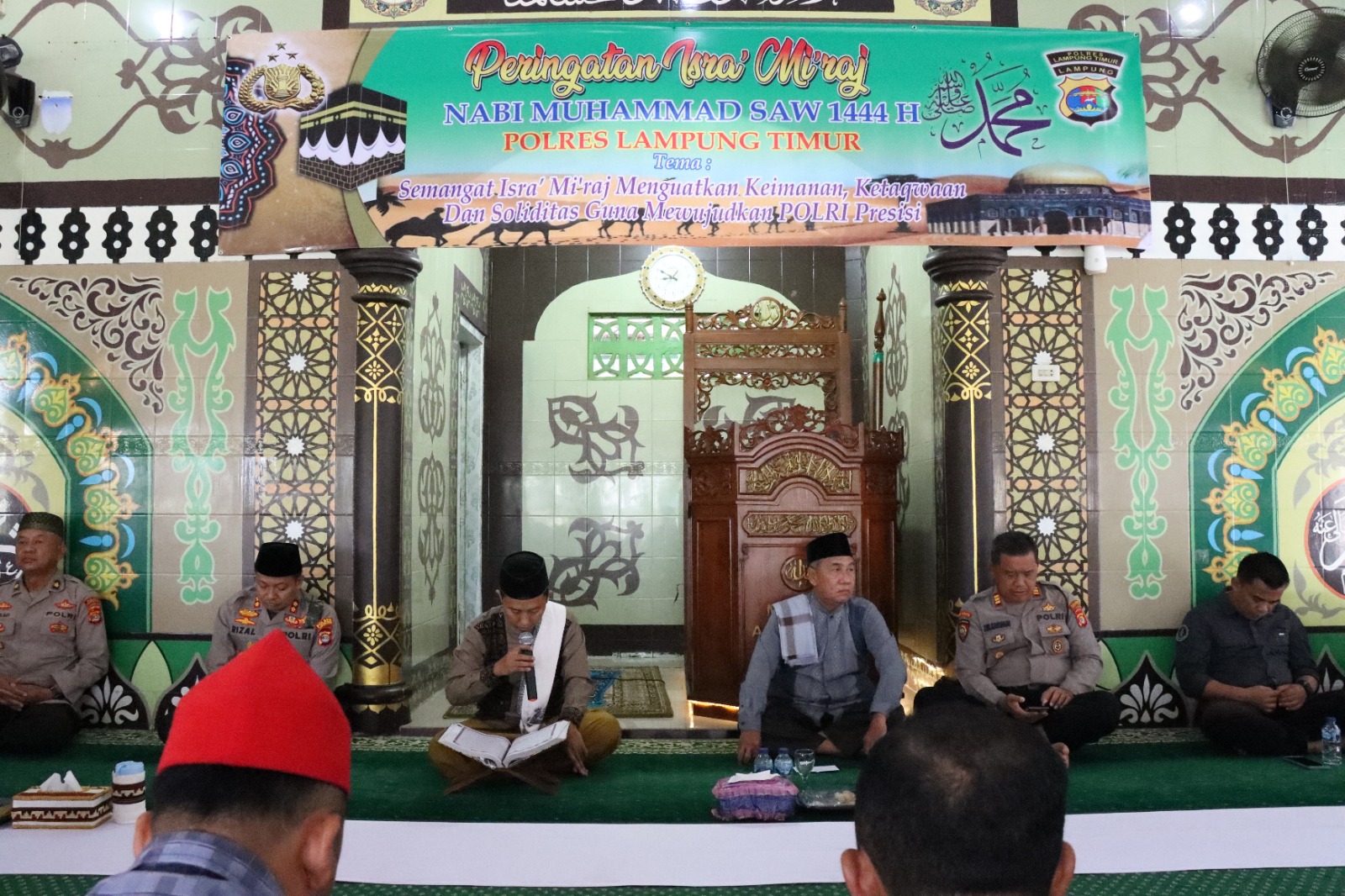 Kegiatan peringatan Isra’ Mi’raj mengangkat tema “Semangat Isra Mikraj Menguatkan Keimanan Ketaqwaan Dan Soliditas Guna Mewujudkan Polri yang Presisi“, berlangsung khidmat diiringi lantunan Sholawat.
