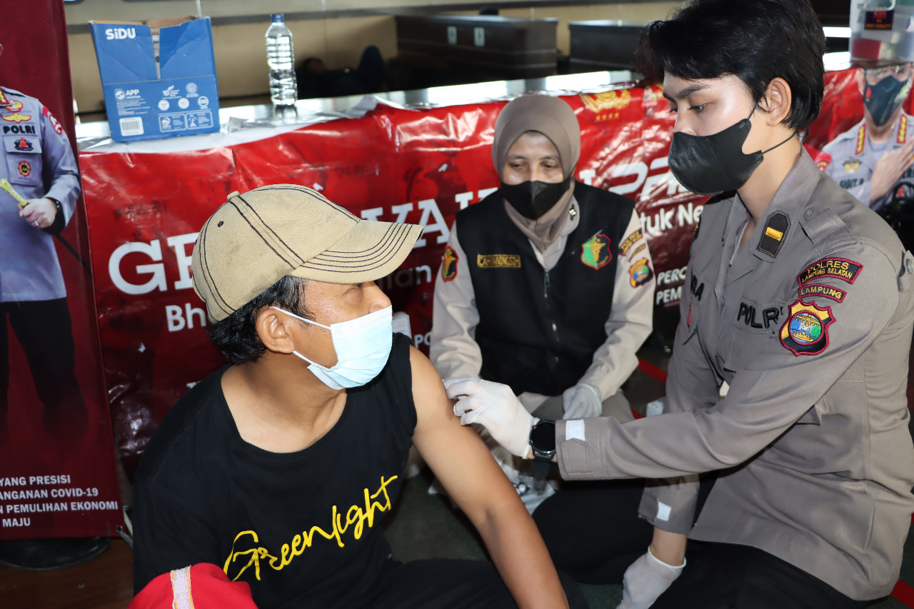 Pelayanan Vaksinasi oleh Tim Medis Polres Lampung Selatan, yang digawangi oleh Ipda dr Cantika Tara ini dilakukan kepada warga masyarakat, Mahasiswa, Pelajar dan siswa Sekolah Dasar (SD) yang ada di Lampung Selatan.