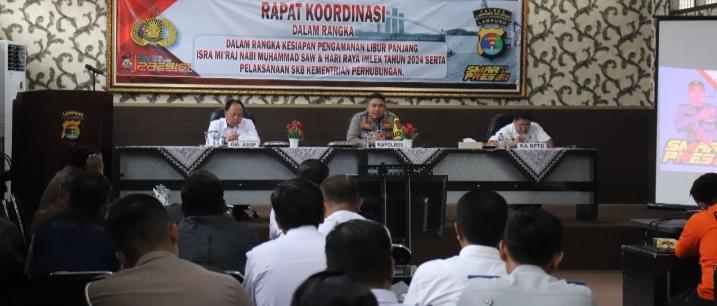 Lampung Selatan, SIBER88.CO.ID_Menjelang libur panjang Isra Mi’raj dan Imlek, Polres Lampung Selatan bersama instansi terkait menyiapkan strategi pengamanan pelabuhan, lalu lintas jalan dan lokasi liburan di Kabupaten Lampung Selatan (lamsel).