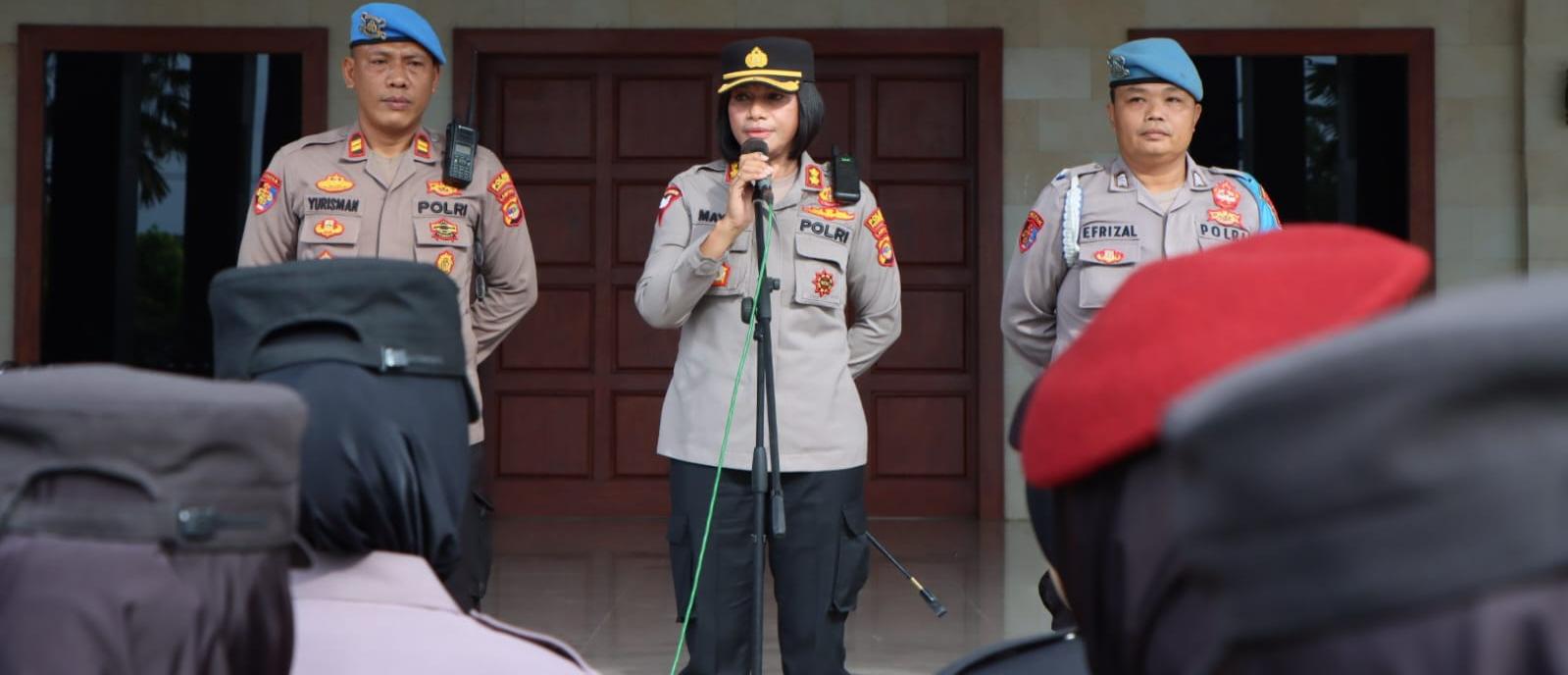 Sebelum kegiatan rekapitulasi penghitungan suara dimulai, Kapolres Pesawaran, AKBP Maya Henny Hitijahubessy, memimpin apel konsolidasi di gedung serbaguna Graha Adora jalan Raden Gunawan desa Negeri Sakti kecamatan Gedong Tataan kabupaten Pesawaran guna mengecek kesiapan anggota pengamanan.