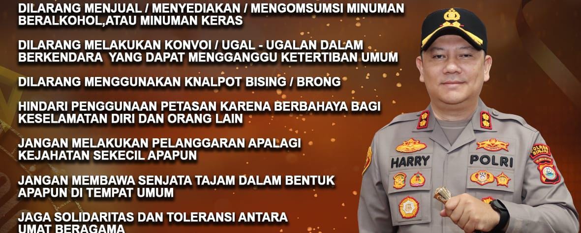 “Hindari segala bentuk pelanggaran hukum, termasuk konsumsi minuman keras, konvoi, penggunaan knalpot bising, serta aktivitas yang dapat membahayakan keselamatan diri dan orang lain,” tegas AKBP Harry Azhar.