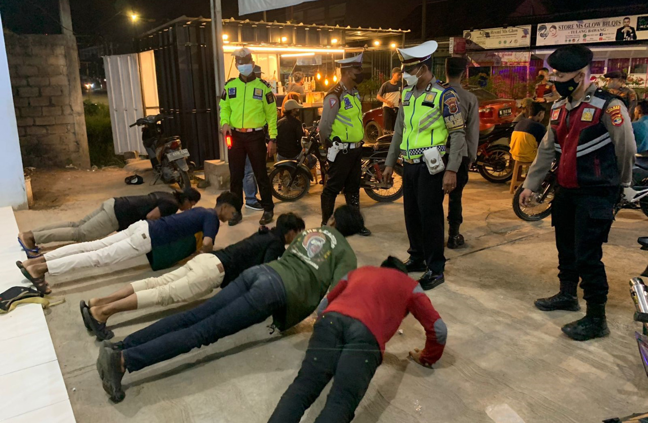 “Warga yang kedapatan tidak memakai masker langsung diberikan tindakan fisik di tempat berupa push up, dan sepeda motor yang tidak di lengkapi dengan spion serta plat nomor, diberikan teguran kepada pemiliknya untuk segera memasang spion dan plat nomornya,” papar Kompol Arsyad yang memimpin langsung kegiatan.