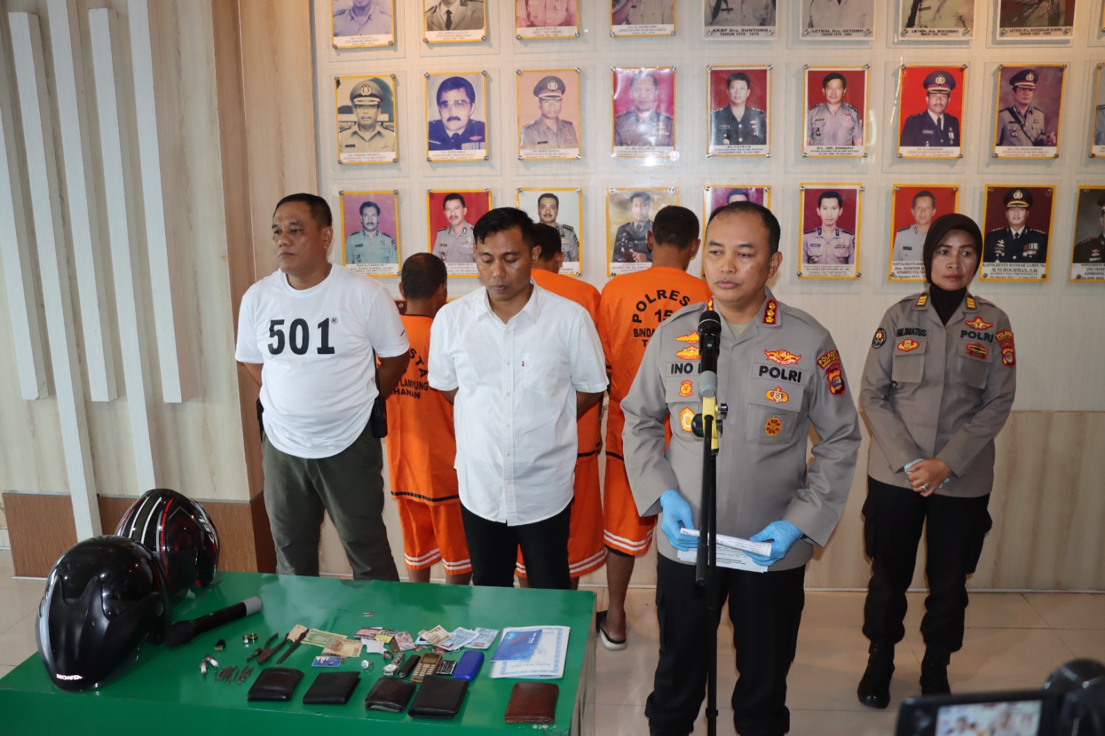 Kapolresta Bandar Lampung Kombes Pol Ino Harianto, S.I.K., M.M., dalam Konferensi Pers yang digelar di Mapolresta Bandar Lampung menjelaskan bahwa ada empat orang pelaku yang berhasil ditangkap oleh Tim Tekab 308 Sat Reskrim Polresta Bandar Lampung.