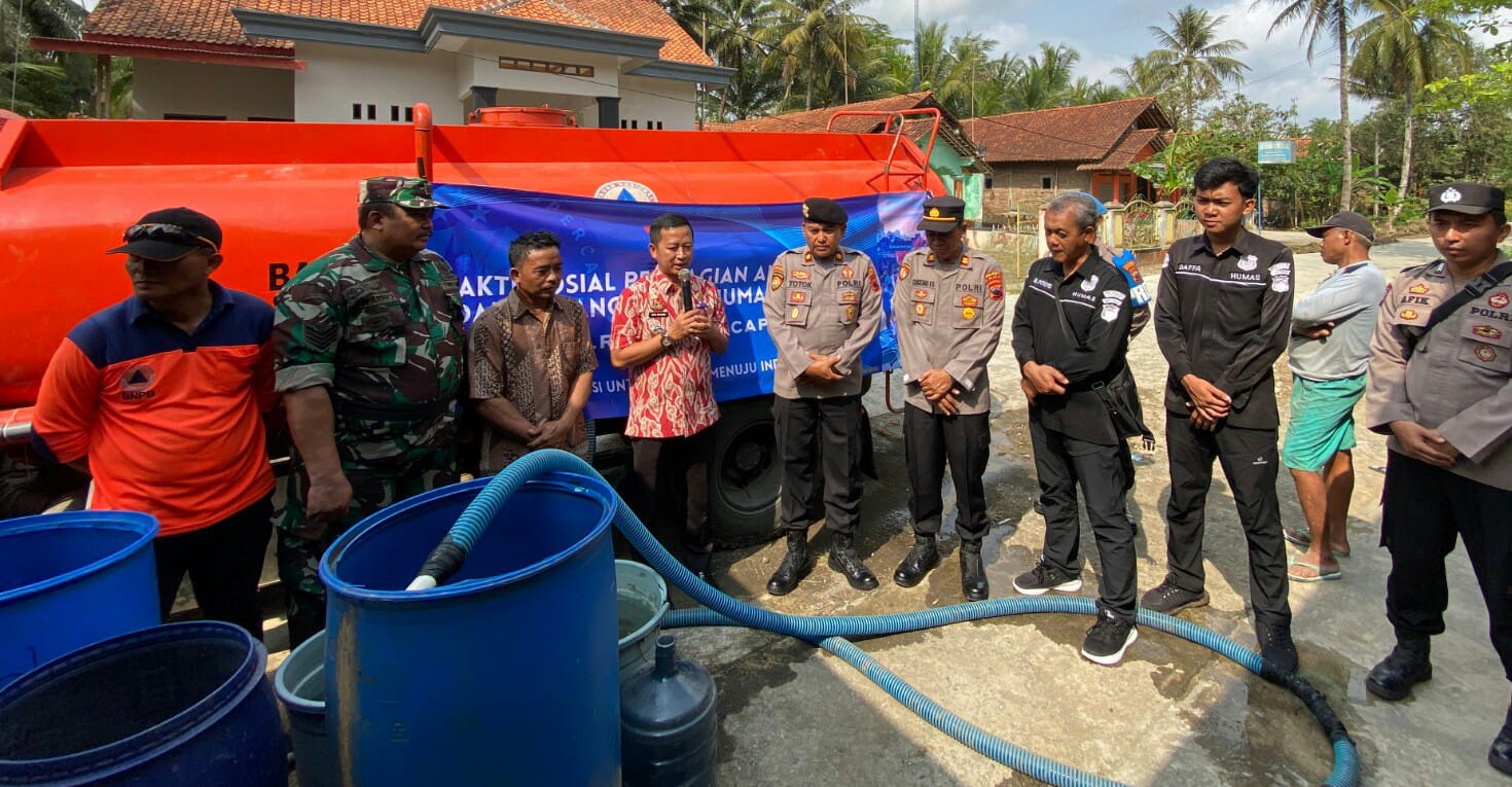 “Oleh karena itu, saya didampingi Kasi Humas Polresta Cilacap beserta anggota serta forkopimcam Bantarsari melaksanakan pembagian air bersih berisi 10.000 liter untuk warga.