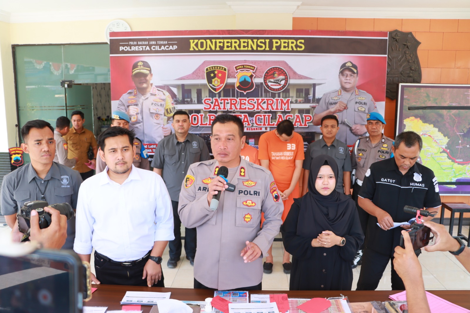 Wakapolresta Cilacap AKBP Dr Arief Fajar Satria, S.H., S.I.K., M.H. dalam konferensi persnya, Senin 28 Agustus 2023 menyatakan bahwa dua tersangka yang diamankan dalam kasus tersebut berinisial SR (42) dan GIP (21). Keduanya merupakan bapak dan anak. Mereka diduga telah melakukan aksinya selama 1 tahun terakhir. “Keduanya ditangkap di jalan Raya Sampang Desa Karangjati Kecamatan Sampang Kabupaten Cilacap” Ujarnya.