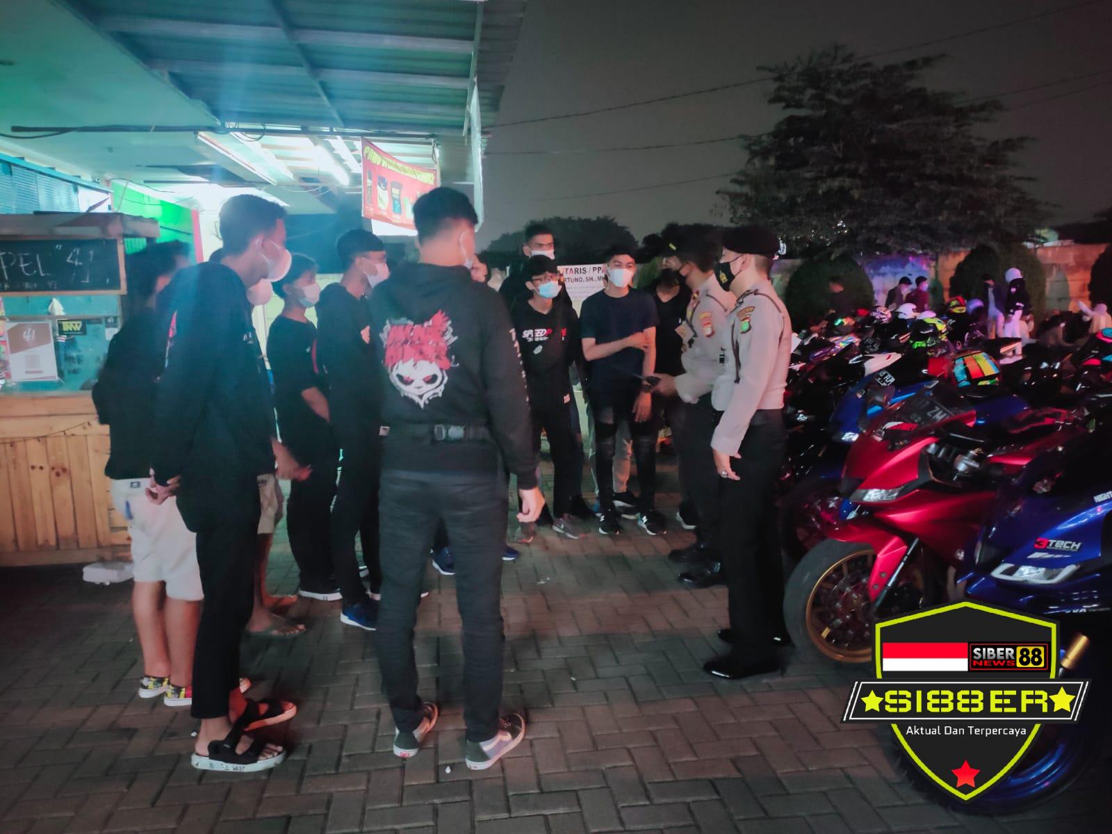 Petugas melakukan Himbauan agar pulang kepada warga yang sedang nongkrong dan bergerombol di Jalan Raya Mustikajaya dan di Jalan Raya Setu-Bantargebang untuk kembali pulang guna antisipasi tawuran.