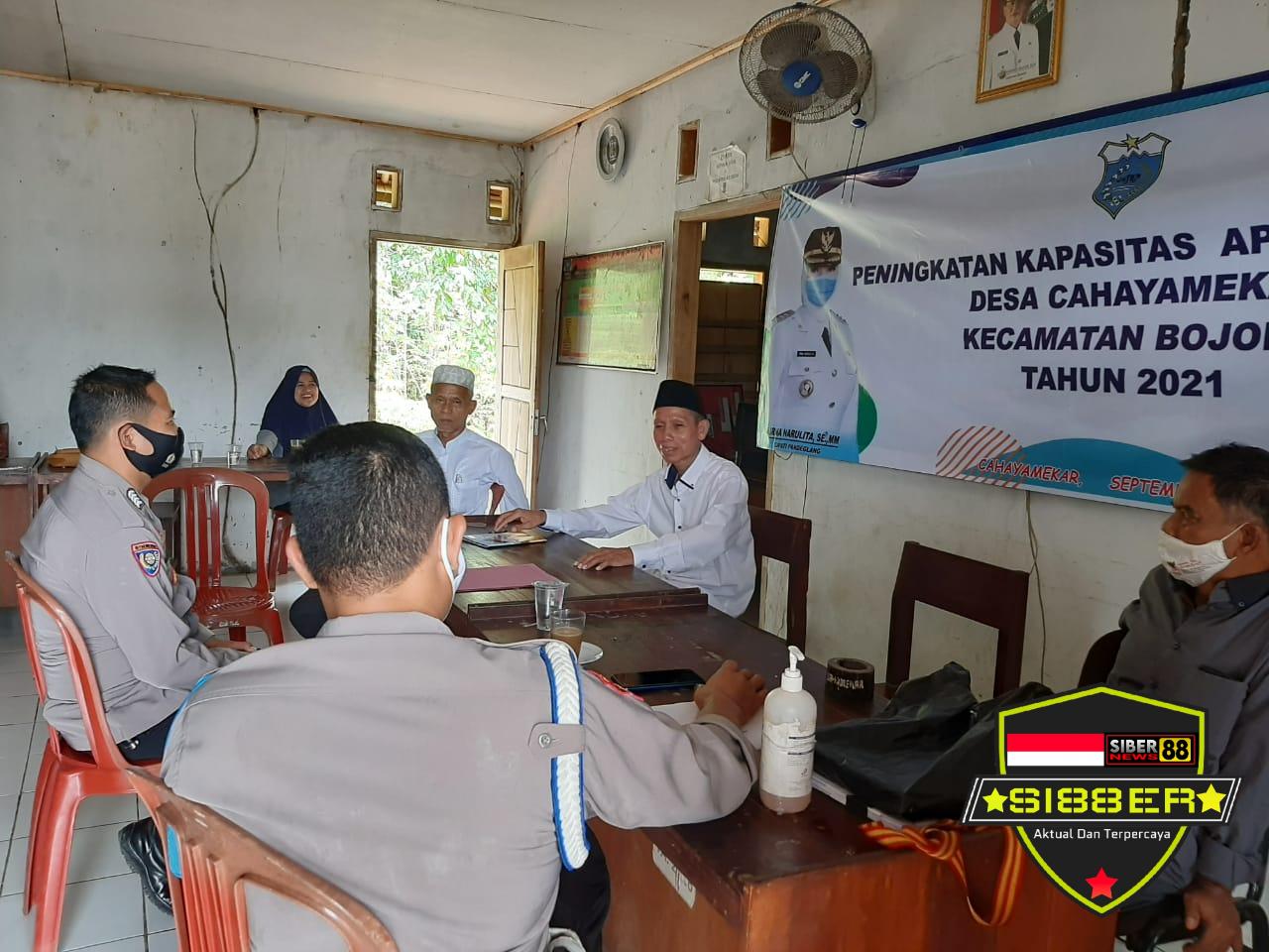 Pandeglang Banten, SIBER88.CO.ID_Menjelang pelaksanaan Pemilihan Kepala Desa (Pilkades) serentak Kabupaten Pandeglang yang akan digelar sebentar lagi, jajaran Polsek Bojong Polres Pandeglang, melaksanakan Monitoring pelaksanaan kampanye Pilkades di Kantor Desa Cahayamekar Kec. Bojong Rabu (13/10/2021).