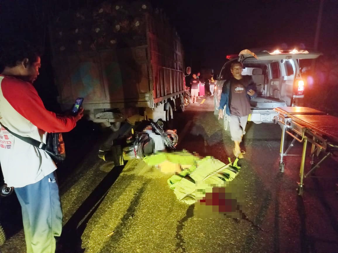 Kecelakaan lalu lintas ini terjadi hari Sabtu (16/04/2022), pukul 01.00 WIB, di Jalan Lintas Rawa Jitu, Kampung Makarti Tama, Kecamatan Gedung Aji Baru, Kabupaten Tulang Bawang.