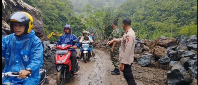 Garut Jabar, SIBER88.CO.ID_Polsek Talegong Polres Garut kembali lakukan pengaturan arus lalu lintas dan pengamanan pembersihan material longsor di hari ke-4. Jumat (14/4/23).