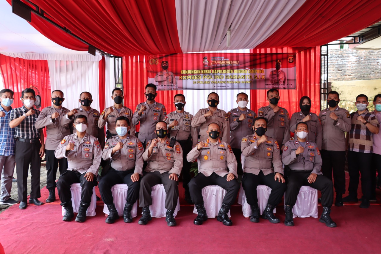 SH, S.IK, menerima kunjungan kerja Kapolresta Bandar Lampung Kombes Pol Ino Harianto, S.I.K. beserta rombongan Pejabat Utama Polresta Bandar Lampung, (9/2/2022) di Polsek Tanjung Karang Barat.