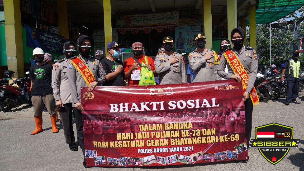 Bogor, SIBER88.CO.ID//Polwan Polres Bogor dan Bhayangkari Polres Bogor Gelar Bakti Sosial dalam rangka HUT Polwan ke 73 dan Hari Kesatuan Bhayangkari ke 69 dengan sasaran Kuli Panggul yang berlokasi di Pasar Cibinong. (07/08/2021)