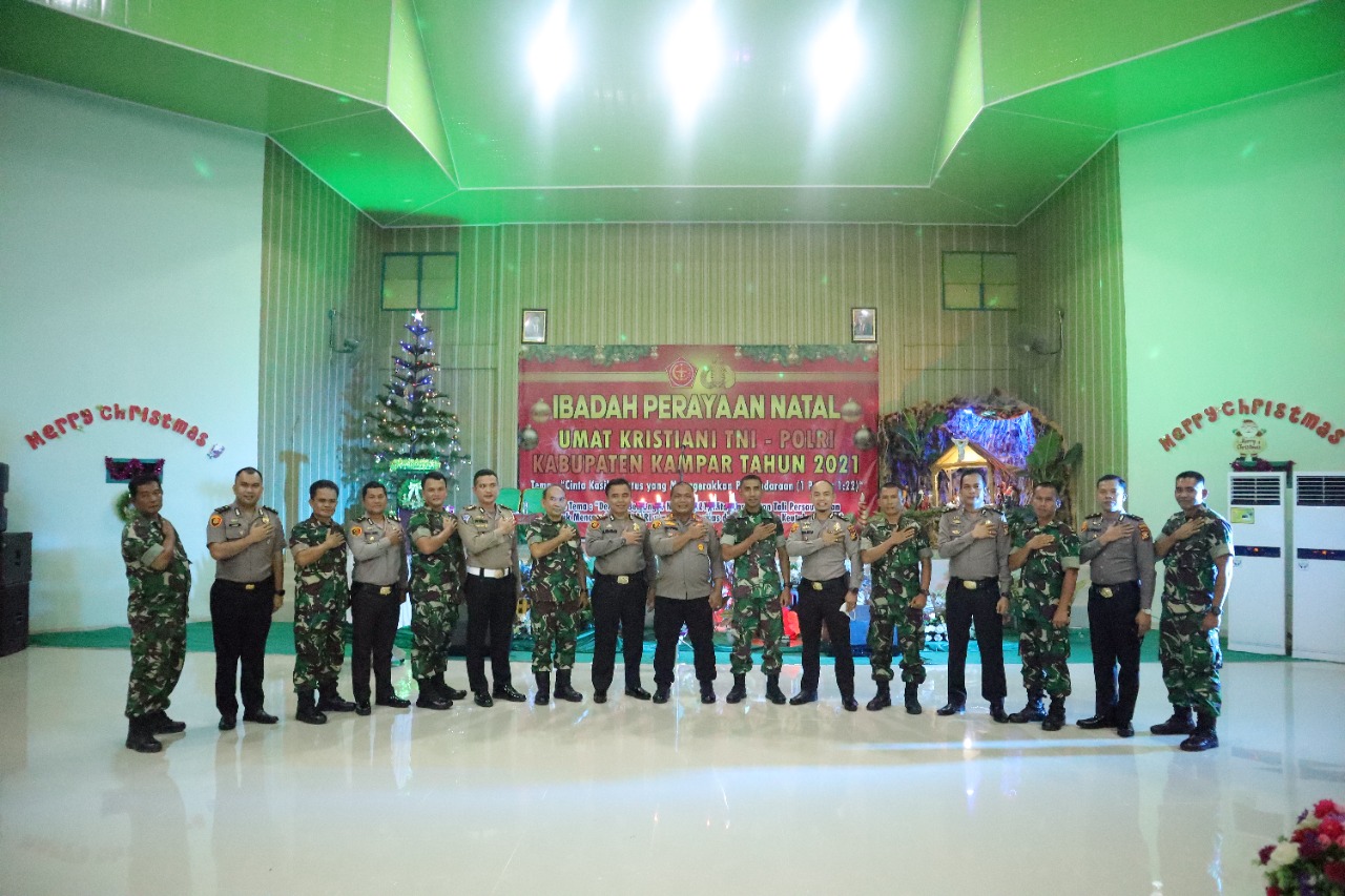 Bangkinang, SIBER88.CO.ID_Segenap Personel Gabungan TNI-Polri yang beragama Nasrani di Kabupaten Kampar, adakan perayakan Natal bersama di Aula Makodim 0313/KPR di Jalan Jend. Sudirman Kecamatan Bangkinang Kota, pada Senin sore (27/12/2021).