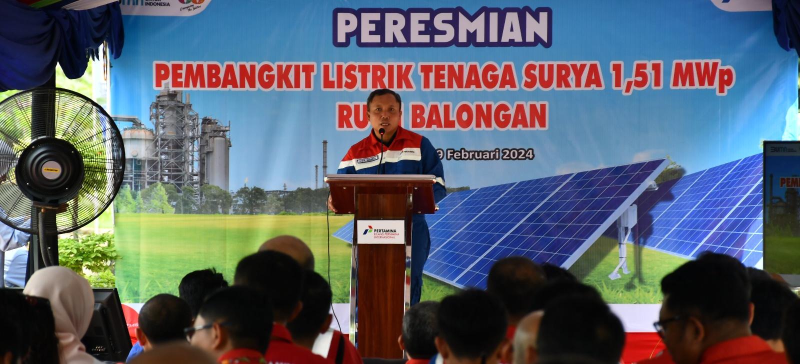 Indramayu Jabar, SIBER88.CO.ID_Pembangkit Listrik Tenaga Surya(PLTS)berkapasitas 1,51 Megawatt peak(MWp)telah diresmikan PT Kilang Pertamina Internasional (KPI) Refinery Unit VI (Kilang) Balongan pada Senin(19/2/2024).