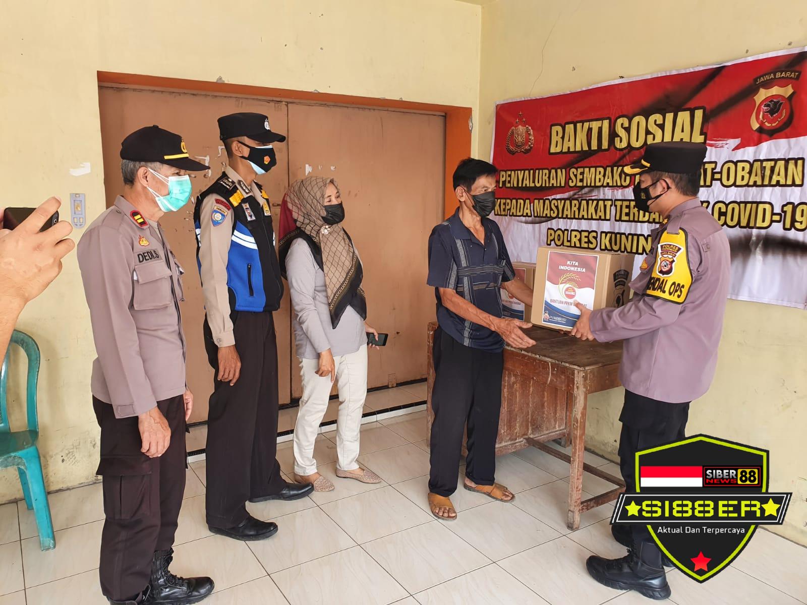 Kuningan, SIBER88.CO.ID//Sebanyak 81 warga masyarakat terdampak Covid-19 di sejumlah desa di Kec Cilimus, Kuningan, mendapatkan penyaluran bantuan sosial berupa paket sembako dari Polres Kuningan, Jumat (23/07/21).