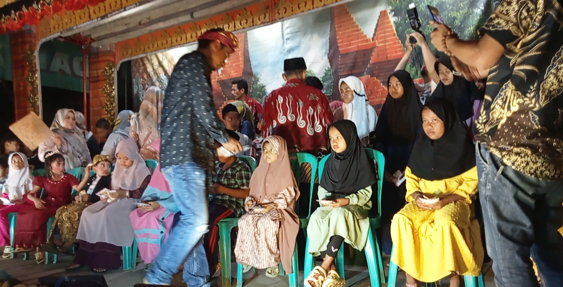 Indramayu Jabar, SIBER88.CO.ID_Malam puncak acara adat Mapag Sri,kepala desa Mekargading kecamatan Sliyeg kabupaten Indramayu menyantuni anak-anak yatim-piatu desa setempat pada Selasa malam(25/04/2023).
