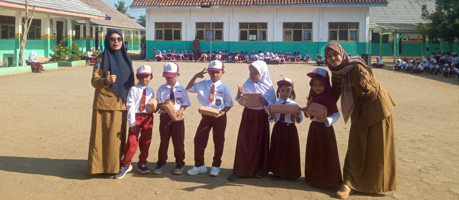 “Semoga dengan dibagikannya hadiah ini bisa bermanfaat untuk siswa siswi kami,meskipun tak seberapa nilainya,”tutur Rojiah.
