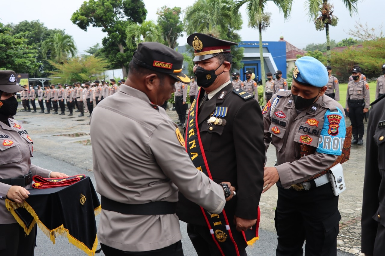 Kedua purnawirawan yang ada di hadapan kita ini, lanjutnya merupakan sosok panutan yang dapat di contoh untuk personel lainnya. Dengan semangat dan penampilan mereka berdua hingga hari terakhir menjadi anggota Polri, kedisiplinan dan tanggung jawabnya tidak pernah luntur.