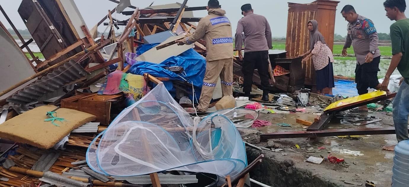 Puting Beliung Hancurkan Rumah Warga,Polsek Juntinyuat Tangkas