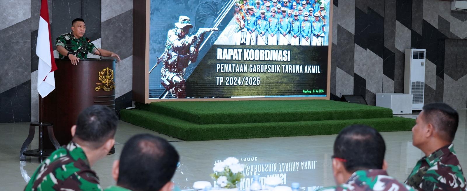 Magelang Jateng, SIBER88.CO.ID_Gubernur Akademi Militer, Mayjen TNI R Sidharta Wisnu Graha, memimpin rapat Koordinasi Penataan Garopsdiktar (Penyelenggaraan Operasional Pendidikan) Taruna Akademi Militer Tahun Pelajaran 2024-2025.