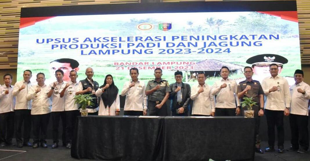 Lampung, SIBER88.CO.ID_Komandan Korem 043/Gatam menghadiri rapat koordinasi upaya khusus (Upsus) akselerasi peningkatan produksi padi dan jagung Tahun 2023-2024 bertempat di ballroom Hotel Novotel Bandar Lampung, Kamis (21/12/2023).