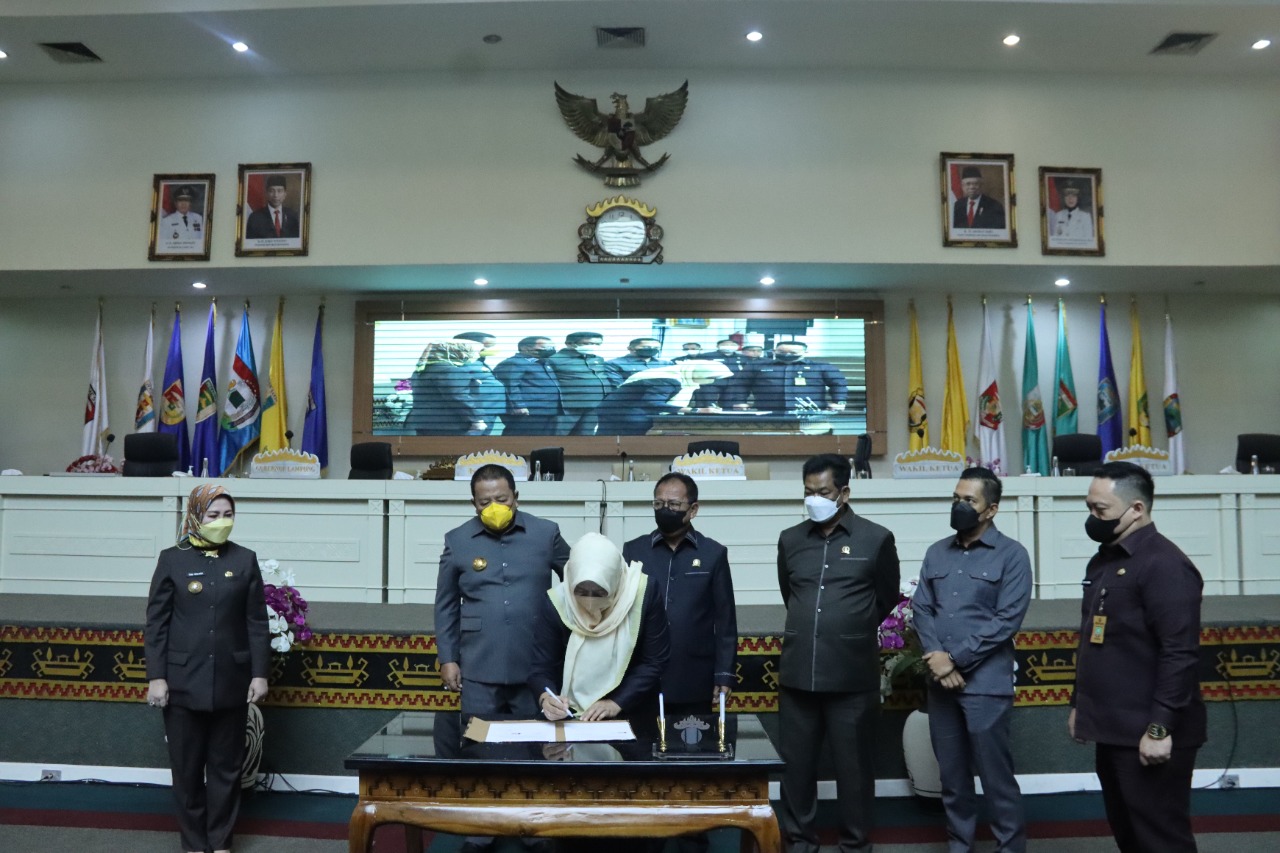 Didalam Rapat Paripurna juga dilakukan Penandatanganan Raperda tentang Pertanggungjawaban Pelaksanaan Anggaran Pendapatan dan Belanja Daerah Provinsi Lampung Tahun Anggaran 2021 oleh Gubernur Lampung bersama Ketua dan Wakil Ketua DPRD Provinsi Lampung.