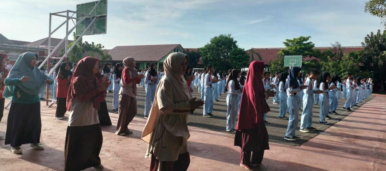 Indramayu Jabar, SIBER88.CO.ID _ kegiatan senam sehat rutin dilakukan SMP Negeri 1 Anjatan Kabupaten Indramayu di setiap hari Sabtu pagi sebelum melaksanakan proses pembelajaran.
