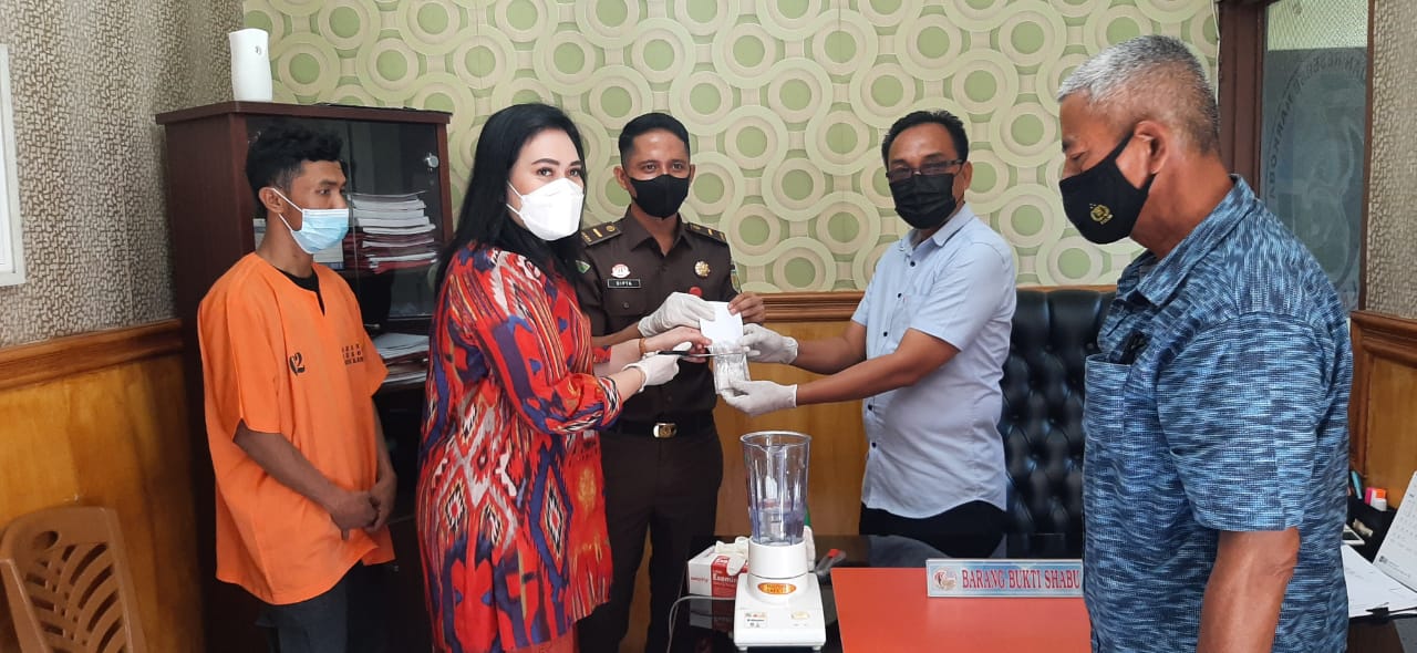 Selanjutnya dilakukan pemusnahan narkotika jenis shabu seberat 22.40 Gram ini, dengan cara dilarutkan dalam air lalu diblender dan dibuang ke tanah depan ruang Sat Resnarkoba.