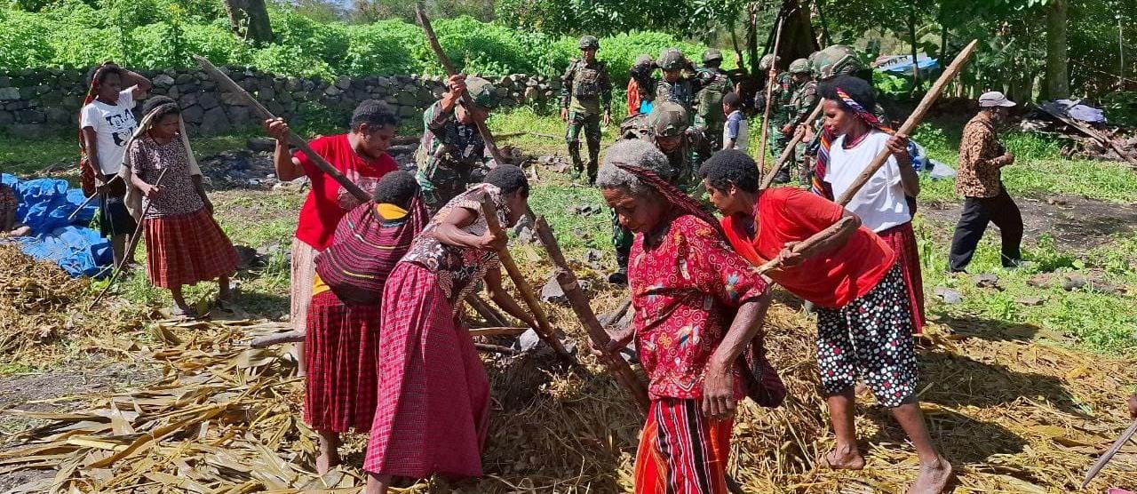Danpos Kurima, Lettu Inf Dany Rizki Hardiyanto, bersama masyarakat Distrik Kurima bahu-membahu melaksanakan bakar batu. Lebih dari sekadar perayaan budaya, kegiatan ini adalah bentuk nyata Komunikasi Sosial(Komsos)antara personel TNI dengan masyarakat yang merangkul kearifan lokal, guna memelihara stabilitas keamanan melalui ikatan sosial yang erat.