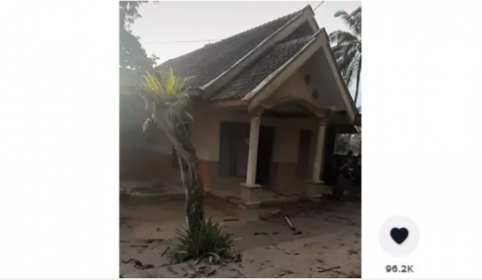 Namun, ada sebuah keajaiban di kampung tersebut. Salah satu rumah warga terlihat masih berdiri kokoh tanpa terkena lahar sedikit pun. Padahal, rumah yang berada di sekelilingnya sudah tenggelam tertimbun pasir.