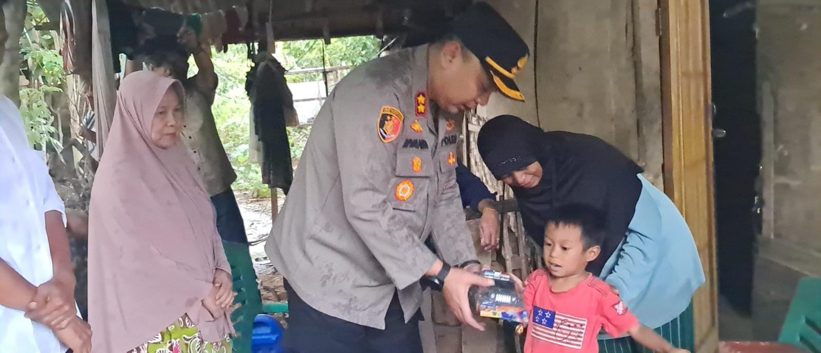 Bantuan berupa paket bahan pokok, mainan anak-anak dan uang tali asih diberikan langsung di rumahnya, Rabu (15/1/2025).