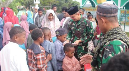 Salat Idul Fitri 1447 H ini diakhiri dengan momen saling bermaaf-maafan dilanjutkan dengan halal bil halal bersama prajurit dan PNS serta keluarga besar Korem 043/Gatam.
