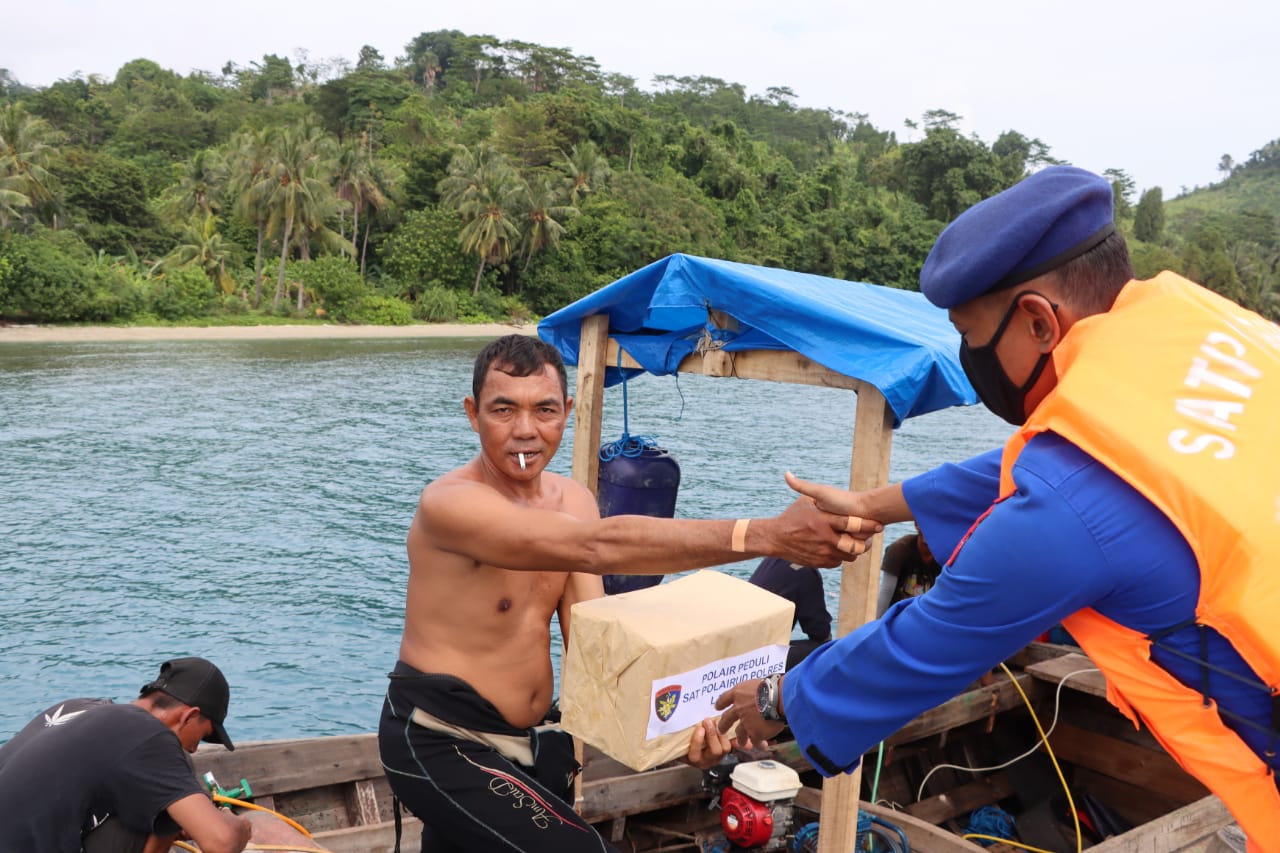 Bantuan yang diberikan langsung oleh Kasat Pol Air bersama dengan personilnya dengan menggunakan Kapal Type C dan perahu karet sehingga dapat berinteraksi dan berkomunikasi langsung dengan para nelayan di tengah laut, disamping itu dilakukan juga himbauan agar tidak menggunakan bom ikan dan tetap menjaga kelestarian ekosistem laut.