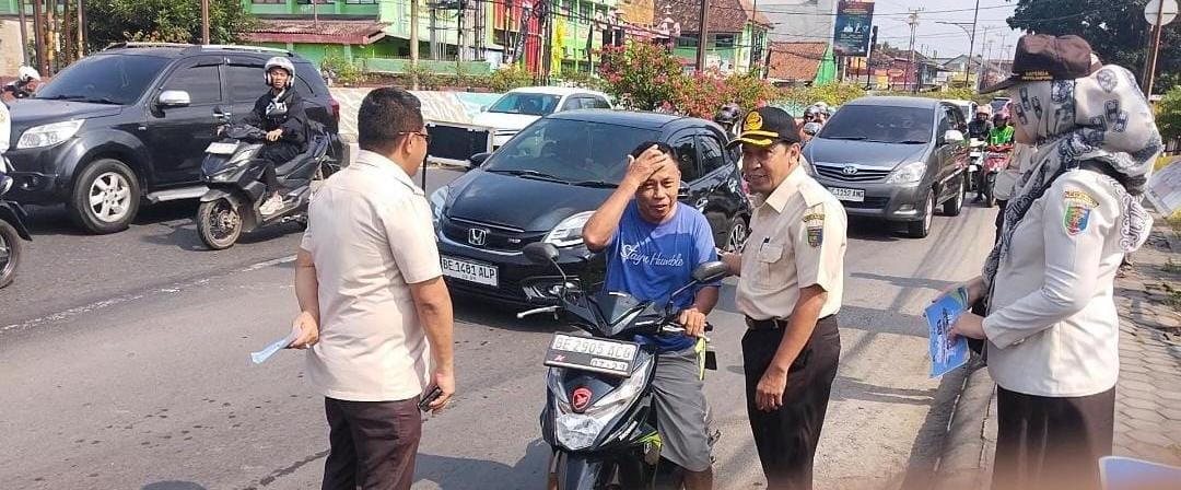 Bandar Lampung, SIBER88.CO.ID_ Guna meningkatkan kesadaran masyarakat akan pentingnya kepatuhan membayar pajak kendaraan bermotor, UPTD Samsat Wilayah I Rajabasa di bawah Badan Pendapatan Daerah (Bapenda) Provinsi Lampung melaksanakan pendataan serta sosialisasi program pemutihan pajak di dua titik strategis berkolaborasi dengan Satlantas Polres Bandar Lampung dalam rangka Operasi Patuh 2025 pada Senin(21/7/2025).