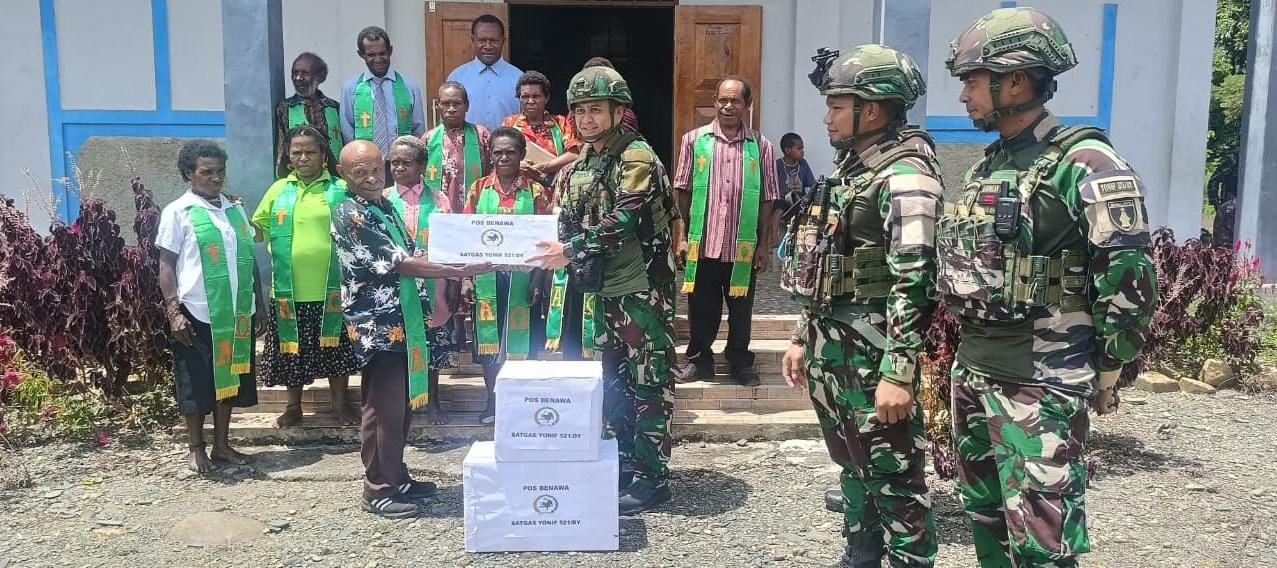 Kegiatan tersebut dipimpin langsung oleh Dankipur 3 Satgas Yonif 521/DY Pamtas RI–PNG Kapten Inf Jerry Octavian Lahindo,bersama beberapa personil Pos Benawa. Penyerahan bingkisan dilakukan secara simbolis kepada Kepala Suku Benawa, disaksikan oleh tokoh masyarakat dan warga setempat setelah kegiatan ibadah di gereja.