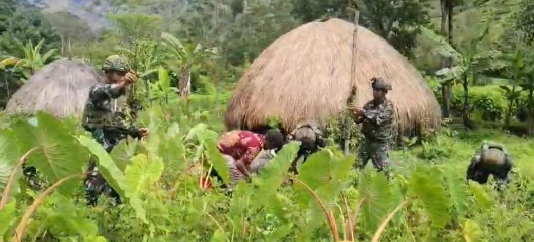 Yahukimo Papua Pegunungan, SIBER88.CO.ID_ Satgas Yonif 521/DY melaksanakan kegiatan Komunikasi Sosial (Komsos) yang dirangkaikan dengan panen hasil kebun bersama warga di Distrik Kurima, Kabupaten Yahukimo, Provinsi Papua Pegunungan pada Kamis (12/2/2025).