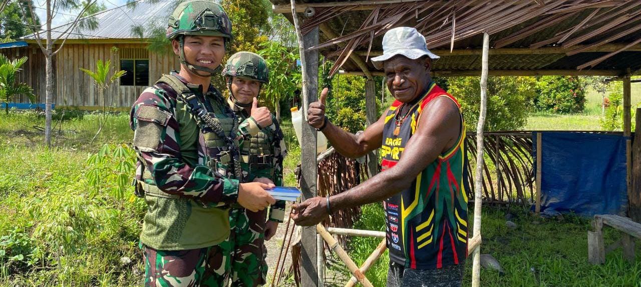 Yalimo Papua Pegunungan, SIBER88.CO.ID_ Satgas Yonif 521/DY melaksanakan kegiatan komunikasi sosial (komsos) dengan membagikan Alkitab kepada masyarakat Kampung Wekolani Distrik Elelim Kabupaten Yalimo Papua Pegunungan, Rabu (4/3/2026).