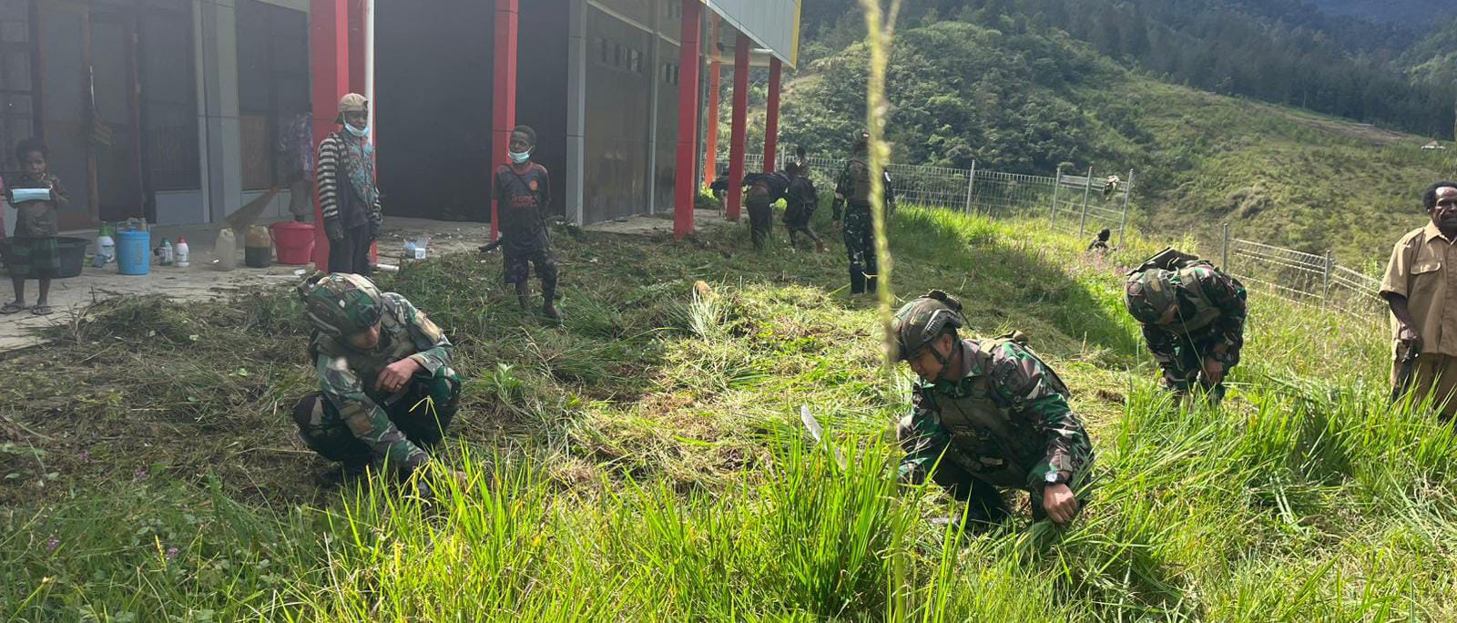 Melalui Pos Mayuberi, para prajurit gagah ini melaksanakan kegiatan teritorial berupa karya bhakti pembersihan lingkungan Puskesmas Mayuberi, Distrik Ilaga Utara, Kabupaten Puncak pada Kamis(5/6/2025).