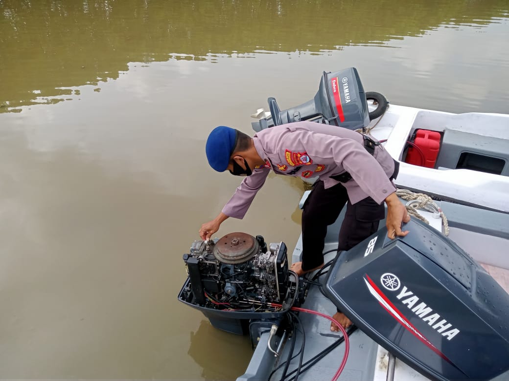 Pengecekan Mesin Kapal tersebut dilakukan bertujuan untuk memastikan kendaraan perahu milik Satpolairud Polresta Tangerang tetap terjaga dengan baik.