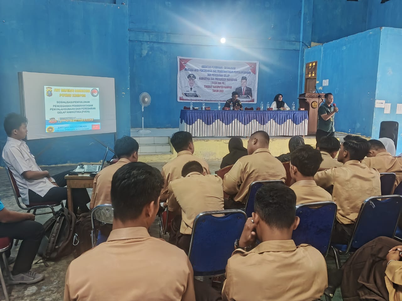 Kampar Riau, SIBER88.CO.ID_Satresnarkoba Polres Kampar kembali gelar sosialisasi pencegahan, pemberantasan penyalahgunaan dan peredaran gelap narkotika dan Prekursor Narkotika (P4GN&PN) tingkat Kabupaten Kampar di SMAN 1 Kampar, kecamatan Kampar, kabupaten Kampar, Rabu, (30/8/23), sekira pukul 09.00 WIB.