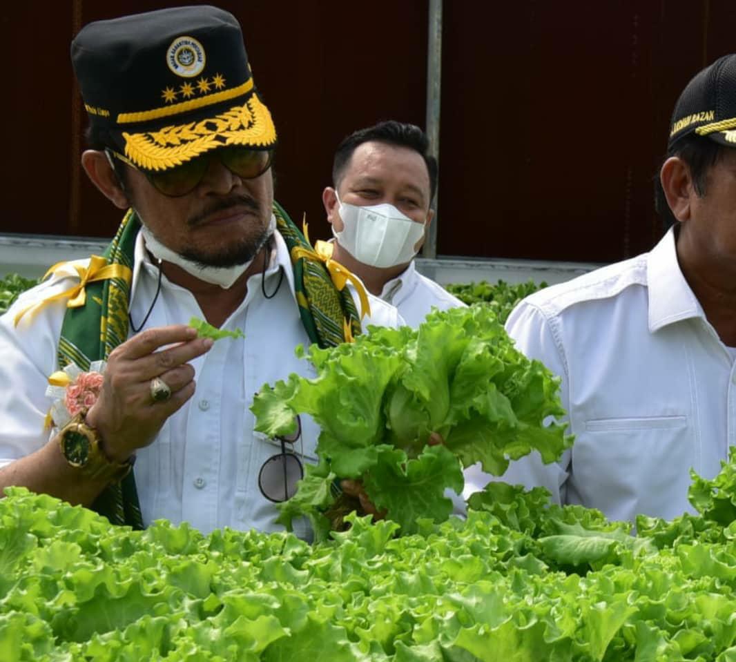 Makasar, SIBER88.CO.ID_Menteri Pertanian Syahrul Yasin Limpo meninjau sekaligus meresmikan 6 screen house di Kabupaten Soppeng serta melepas pengiriman komoditas sayuran ke pasar modern Makassar.