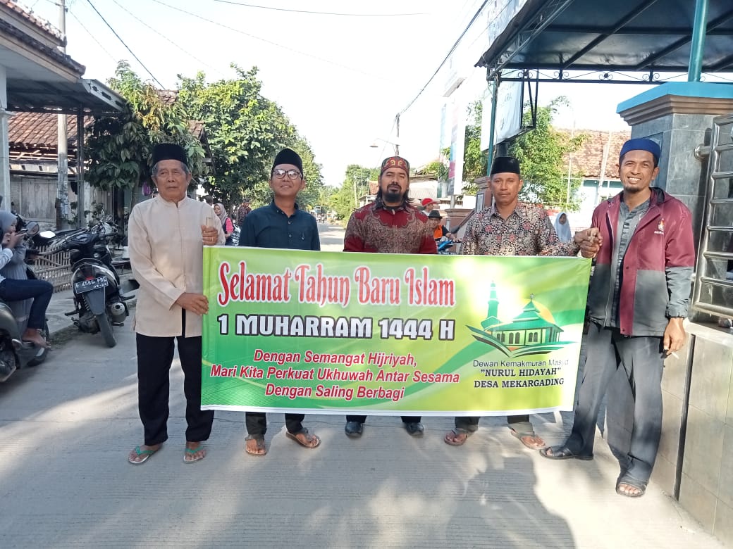 Dengan demikian kegiatan penyambutan 1 Muharram 1444 H diadakan beberapa kegiatan diantara Pawe berjalan kaki seluruh santri tiap-tiap mushola desa mekargading diringi oleh drumben di Lanjutkan Istigosah dan do’a bersama Yang bertempat di Masjid Jam’i Nurul Hidayah Desa Mekargading Kecamatan Sliyeg Kabupaten Indramayu pada hari Jum’at tanggal 29/7/2022.