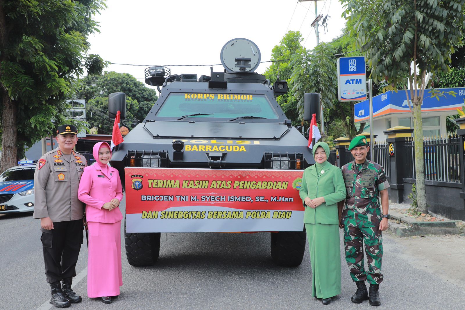 Brigjen M Syech Ismed dan istri dilepas dengan tradisi pedang pora oleh para perwira pertama Polda, kemudian diantar kembali ke Korem 031/Wirabima menggunakan mobil kebanggaan Brimob Polda Riau, Mobil Baracuda, dan dikawal oleh Kapolda dan segenap Forkopimda serta para pejabat utama Polda Riau. (Ardi)