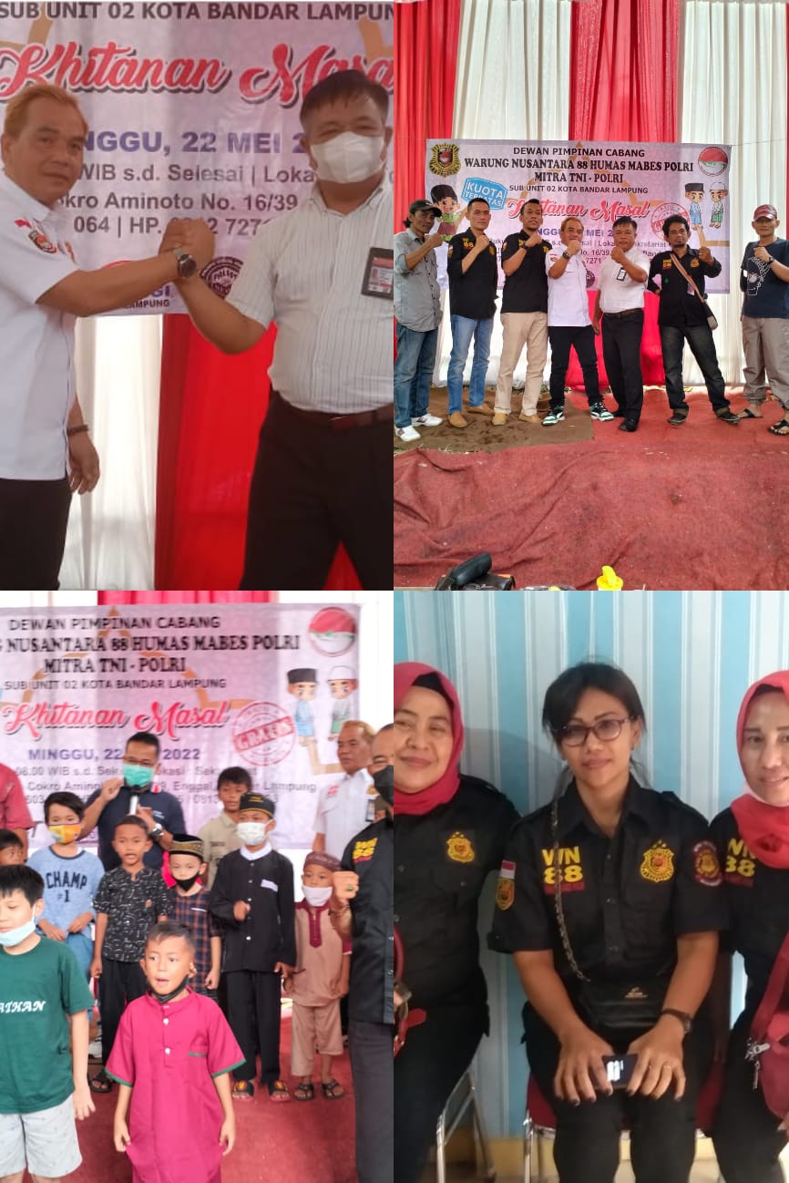 Bandar Lampung, SIBER88.CO.ID_Ketua WN88 unit 13 Lampung Mitra TNI-POLRI Menghadiri Acara Khitanan Masal Bandar Lampung Minggu 22/05/2022.