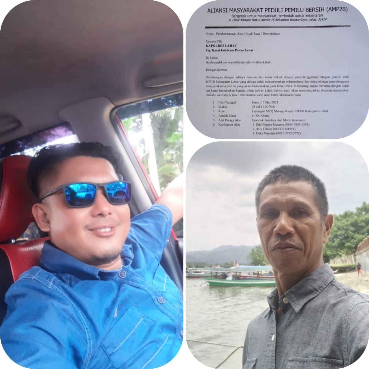 Hari Senen 15 Mei 2023, Jam 08:00 Wib Akan melakukan aksi damai di depan kantor dewan perwakilan rakyat daerah ( DPRD ) kabupaten lahat, aksi ini dilaksanakan untuk menjaga marwah komisi pemilihan umum ( KPU ) sebagai lembaga penyelenggara pemilu yang independen.