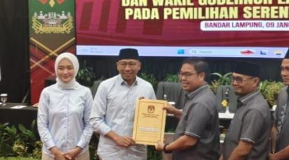 Bandar Lampung, SIBER88.CO.ID_ Rapat pleno terbuka penetapan pasangan gubernur dan wakil gubernur digelar KPU Provinsi Lampung di hotel Emersia Bandar Lampung,Kamis(9/1/2025). Ketua KPU Provinsi Lampung,…