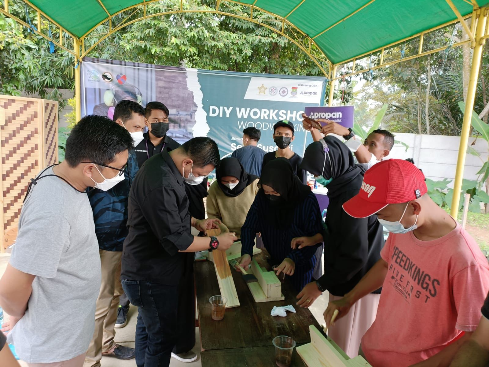 Tangerang, SIBER88.CO.ID_Taman Ide Bersama Nalaktak Kai dan Propan mengadakan acara workshop aplikasi finishing kayu yang berlokasi di Taman Ide, Jalan Raya Tigaraksa, Perumahan Triraksa Village 2, Kelurahan Tigaraksa, Kecamatan Tigaraksa. Pada acara kali ini, Propan merangkul para pengrajin, pecinta, dan penghobi kayu yang tergabung dalam komunitas “Nalaktak Kai Tangerang”. Inilah keseruan yang terjalin selama acara berlangsung. Selasa (30/11/2021).